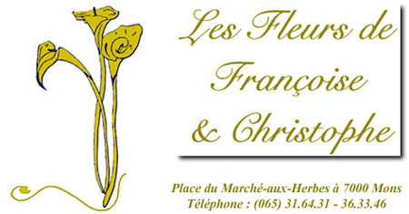Françoise & Christophe vous souhaite la bienvenue ! Les Fleurs de Françoise & ChristophePlace du Marché-aux-Herbes à 7000 Mons (065) 31.64.31 - 36.33.46